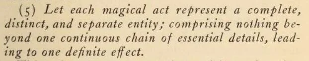 Rule 5: Let each magical act represent a complete distinct, and separate entity; comprising nothing beyond one continuous chain of essential details, leading to one definite effect.